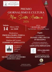 A Giardini Naxos presso il Museo del Mare (Rione Pallio) il 14 marzo alle ore 18,00 si terrà il Premio Giornalismo e Cultura "Mino Saetta Antinoro" a cura dell'Accademia Euromediterranea delle Arti. L'evento è patrocinato dal Comune di Giardini Naxos